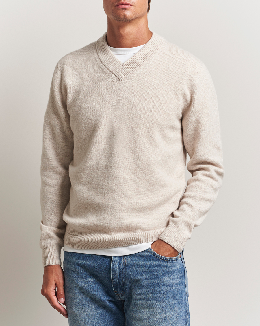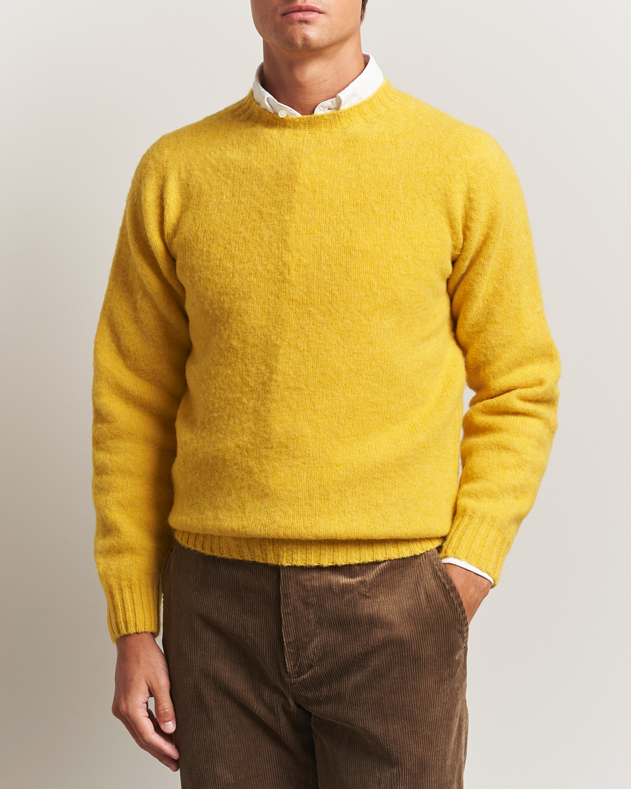 This yellow knitted sweater from Howlin' can effectively enhance an outfit by adding a vibrant and playful pop of colour. The traditional craftsmanship in brushed Scottish virgin wool gives the sweater a unique feel and quality. When styled with brown corduroy trousers, brown brogues, and a wool blazer, it creates an interesting contrast between the casual and the elegant, with a nod to the 1970s. The colourful sweater makes the combination stand out, and together with the soft, earthy tones, the garments form a perfect combination for autumn.