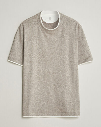 Herren | T-Shirts | Brunello Cucinelli | Double Collar Linen T-Shirt Brown