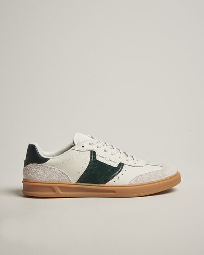 Sneaker von Fred Perry. Die Marke wurde im Jahr 1952 vom britischen Tennismeister Fred Perry gegründet und ist bekannt für ihren einzigartigen und zeitlosen Stil, der Sport, Mode und Subkulturen auf charakteristische Weise verschmilzt.